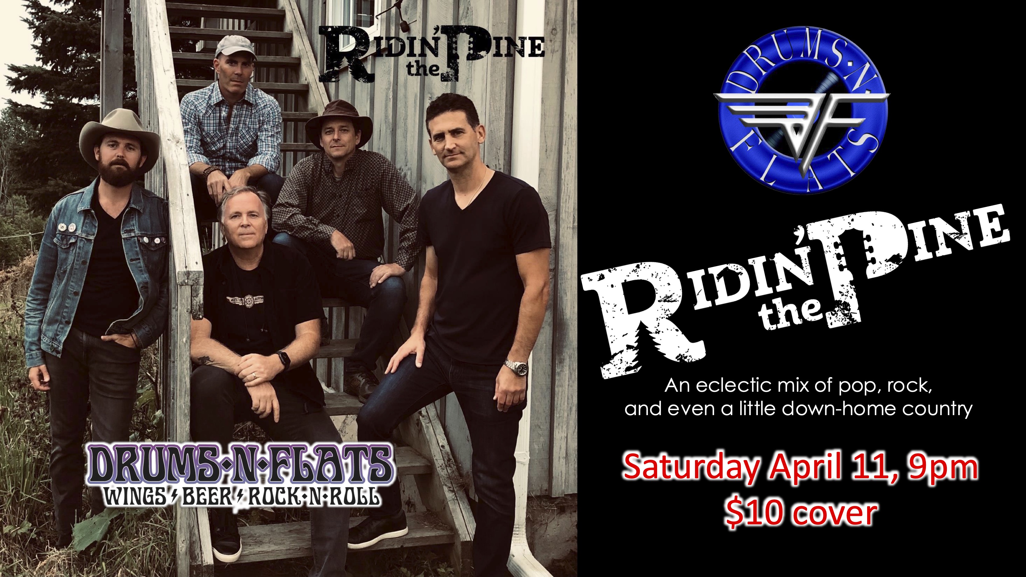 Saturday April 11, 9pm - RIDIN' THE PINE $10 cover